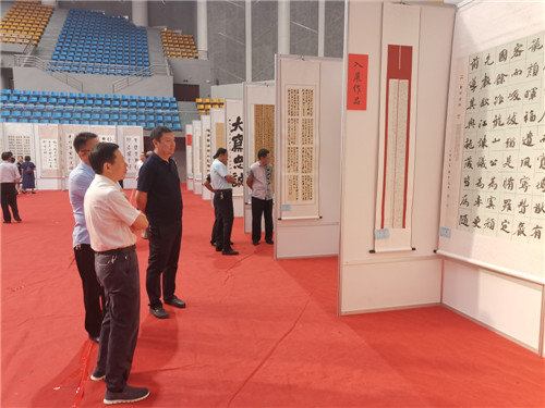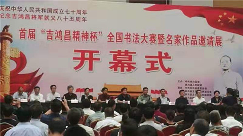 為紀(jì)念抗日民族英雄吉鴻昌將軍就義85周年,大力弘揚(yáng)愛國(guó)主義精神和中華民族優(yōu)秀傳統(tǒng)文化,9月28日上午,首屆“吉鴻昌精神杯”全國(guó)書法大賽暨名家作品邀請(qǐng)展在扶溝縣體育館隆重舉行。原廣州軍區(qū)政治部副主任陳大民少將、解放軍報(bào)社原副社長(zhǎng)田仁德少將、解放軍報(bào)社原副總編孫臨平少將、解放軍裝備學(xué)院原副政委孫南京少將、解放軍總后勤部某研究所原所長(zhǎng)楊廷欣少將、吉鴻昌將軍親屬鄭吉安大校,市委常委、周口軍分區(qū)政委孫先振,市政協(xié)副主席張文平,扶溝縣四個(gè)班子領(lǐng)導(dǎo)及副處級(jí)干部等出席開幕式??h委副書記、政法委書記詹凱主持儀式。