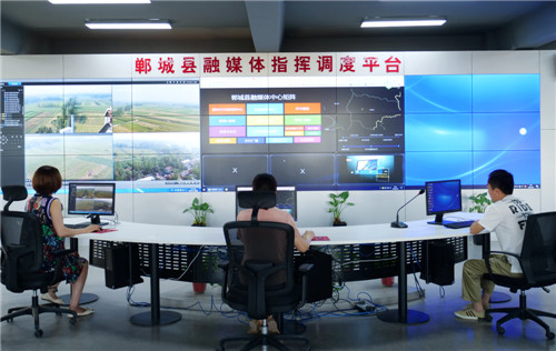 “要扎實抓好縣級融媒體中心建設,更好地引導群眾、服務群眾?!弊鳛槭〖壝襟w融合示范縣,鄲城縣委、縣政府高度重視媒體融合發(fā)展,縣委書記羅文閣、縣長李全林多次深入融媒體中心建設現(xiàn)場調研指導工作,并提出殷切期望。要求縣委宣傳部、融媒體中心組織專人負責、專業(yè)專攻、專題研究,走出去學習先進、坐下來結合實際、多動腦探索創(chuàng)新,“鄲城縣融媒體中心”于2018年10月建成,躋身全市融媒體建設第一方陣。2018年11月,河南省縣級新時代文明實踐中心、志愿服務中心、融媒體中心建設現(xiàn)場會在鄲城縣召開。