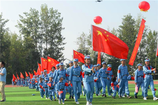 當天上午,小朋友在家長和老師的帶領下,身穿紅軍軍服,手里揮動著小紅旗,鮮嫩的小臉蛋上貼著小國旗,雄赳赳氣昂昂地走在體育場上,邁著整齊堅定的步伐,昂首挺胸,高唱國歌,共同祝福偉大的祖國70華誕。