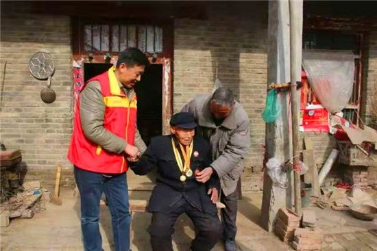 趙隆成是衡霞光走訪的第一名老兵。老人1925年出生,高賢鄉(xiāng)聚臺崗行政村人,16歲加入中國共產(chǎn)黨,1943年開封戰(zhàn)役中腳跟受傷,行動不便?!肮伯a(chǎn)黨好,共產(chǎn)黨的干部們好啊?!?得知來訪, 老人拉住衡霞光的手激動地說。