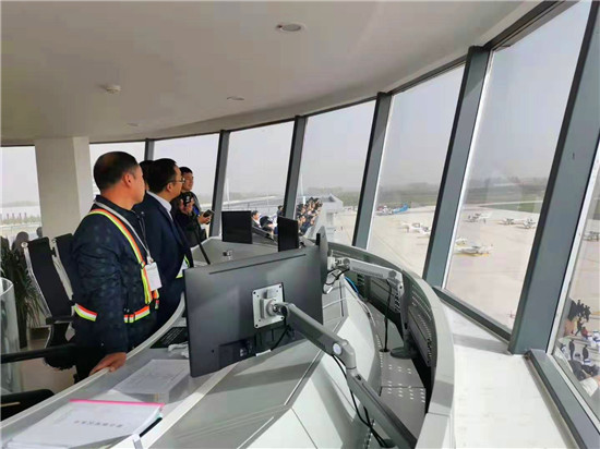 10月29日上午,周口西華通用機(jī)場正式啟用。在機(jī)場工作人員的帶領(lǐng)下,記者來到機(jī)場運(yùn)行中心塔臺(tái)。塔臺(tái)可以環(huán)視機(jī)場全貌。機(jī)場運(yùn)行中心是機(jī)場指揮運(yùn)行的中樞,對空指揮系統(tǒng)、氣象自動(dòng)觀測系統(tǒng)、ADS-B監(jiān)視系統(tǒng)和機(jī)場全景監(jiān)控系統(tǒng)均在運(yùn)行中心塔臺(tái)內(nèi)。