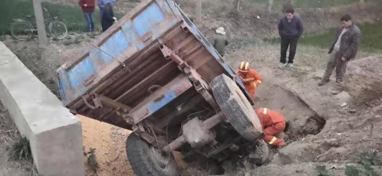11月24日16時54分許,鄲城縣消防大隊指揮中心接到報警,稱位于省道S329潘莊指示牌附近,一輛農(nóng)用三輪車側(cè)翻,1人被困,請求救援。