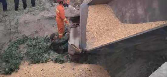 接警后,鄲城消防大隊立即出動3輛消防車15名指戰(zhàn)員前往處置。經(jīng)偵查發(fā)現(xiàn),側(cè)翻車輛是一輛農(nóng)用三輪車,車上拉有約2噸散裝玉米?,F(xiàn)場玉米灑落一地,駕駛員約六十歲,左腿被農(nóng)用三輪車前輪壓住,無法脫身,加之即將天黑,當(dāng)時天氣較冷,如不及時處置,后果不堪設(shè)想。