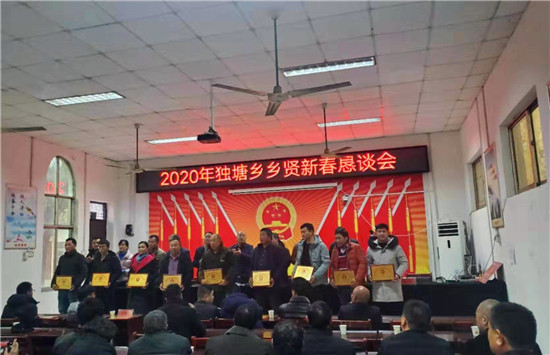 最后,鄉(xiāng)黨委書記高毓明向與會鄉(xiāng)賢代表送上了新春祝福,并介紹了獨(dú)塘鄉(xiāng)2020年發(fā)展規(guī)劃和未來工作思路,希望有資金、懂技術(shù)的成功人士回鄉(xiāng)發(fā)展創(chuàng)業(yè)。高毓明書記表示,獨(dú)塘鄉(xiāng)的每一分進(jìn)步、每一份成績的取得,都離不開鄉(xiāng)賢們的鼎力支持,希望各位鄉(xiāng)賢有空?;丶铱纯?,積極為家鄉(xiāng)發(fā)展獻(xiàn)言獻(xiàn)策,為建設(shè)美麗和諧新獨(dú)塘奉獻(xiàn)自己的一份力量。