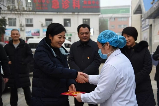 鄲城縣第一醫(yī)療健康服務集團作為河南省新型肺炎救治定點醫(yī)院時刻牽動著縣委縣政府領導的心。1月23日,縣委書記羅文閣、縣政府縣長李全林、縣政府副縣長肖煒來到縣醫(yī)院親切慰問一線醫(yī)護人員,并給一線工作人員帶去春節(jié)祝福。