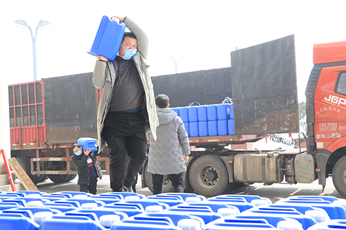 該公司總經(jīng)理馬媛媛介紹,她老家是周口的,在鄭州開辦的公司,公司業(yè)務(wù)主要是搞醫(yī)療物質(zhì)配送?!爱?dāng)前嚴(yán)峻的疫情形勢真得讓人很擔(dān)心,為了能夠給家鄉(xiāng)提供一些力所能及的幫助,公司特意購置了這批醫(yī)用物質(zhì)以解家鄉(xiāng)防控疫情的燃眉之急?!瘪R媛媛介紹,為了能在市場上購到這批貨物,公司從除夕晚上就開始聯(lián)系貨物,打了近百個電話,直到大年初四才在山東的一家公司聯(lián)系到貨源,排了6天隊之后,才購到10000斤消毒液、4000副醫(yī)用手套,貨到之后,公司馬不停蹄,立即拉了過來,讓這批貨物盡快派上用場。