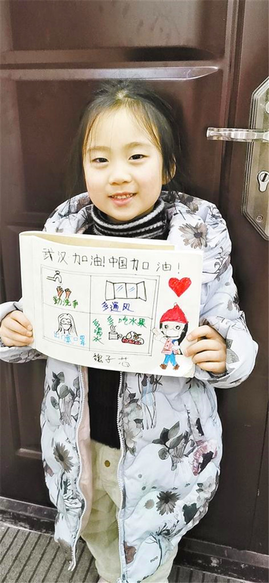 周口六一路小學(xué)近日布置了一項(xiàng)作業(yè),要求學(xué)生設(shè)計(jì)一張防疫宣傳小報(bào),為武漢加油。該校學(xué)生用漫畫的形式呼吁大家勤洗手、戴口罩、多喝水、多通風(fēng)。記者 王晨 通訊員 李琨 攝