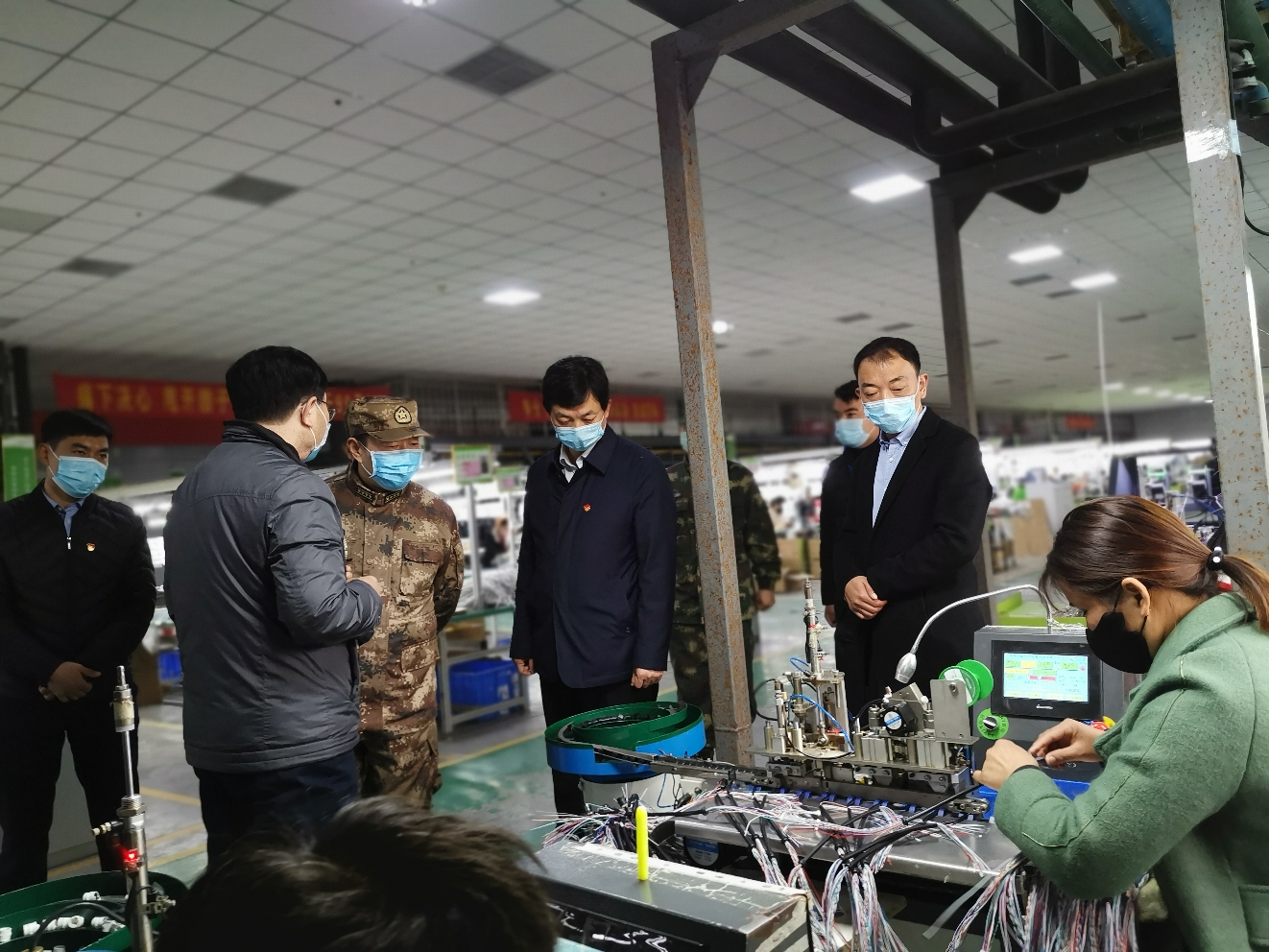 周口海鑫精密工業(yè)有限公司主要經(jīng)營產(chǎn)品范圍為安防監(jiān)控、通訊網(wǎng)絡(luò)等領(lǐng)域,王善沖深入到生產(chǎn)車間詳細了解疫情防控、員工到崗率、復(fù)產(chǎn)率等情況,希望企業(yè)嚴格落實疫情防控措施,在確保安全、可控的前提下,加快復(fù)工復(fù)產(chǎn),恢復(fù)和擴大產(chǎn)能。因為外來員工數(shù)量較多,公司在做好人員排查、隔離觀察等管控措施和應(yīng)急預(yù)案的基礎(chǔ)上,進行了嚴格的防疫防控措施,確保員工健康上崗。王善沖對公司防控措施表示肯定,希望企業(yè)按照進度,有序復(fù)工,為全縣乃至全市企業(yè)發(fā)展帶好頭、作表率。他指出,當前全市疫情防控形勢整體向好,但仍不能有絲毫大意,要繼續(xù)督促企業(yè)落實落細疫情防控主體責任,絕不能因工作疏漏引起疫情反復(fù)。