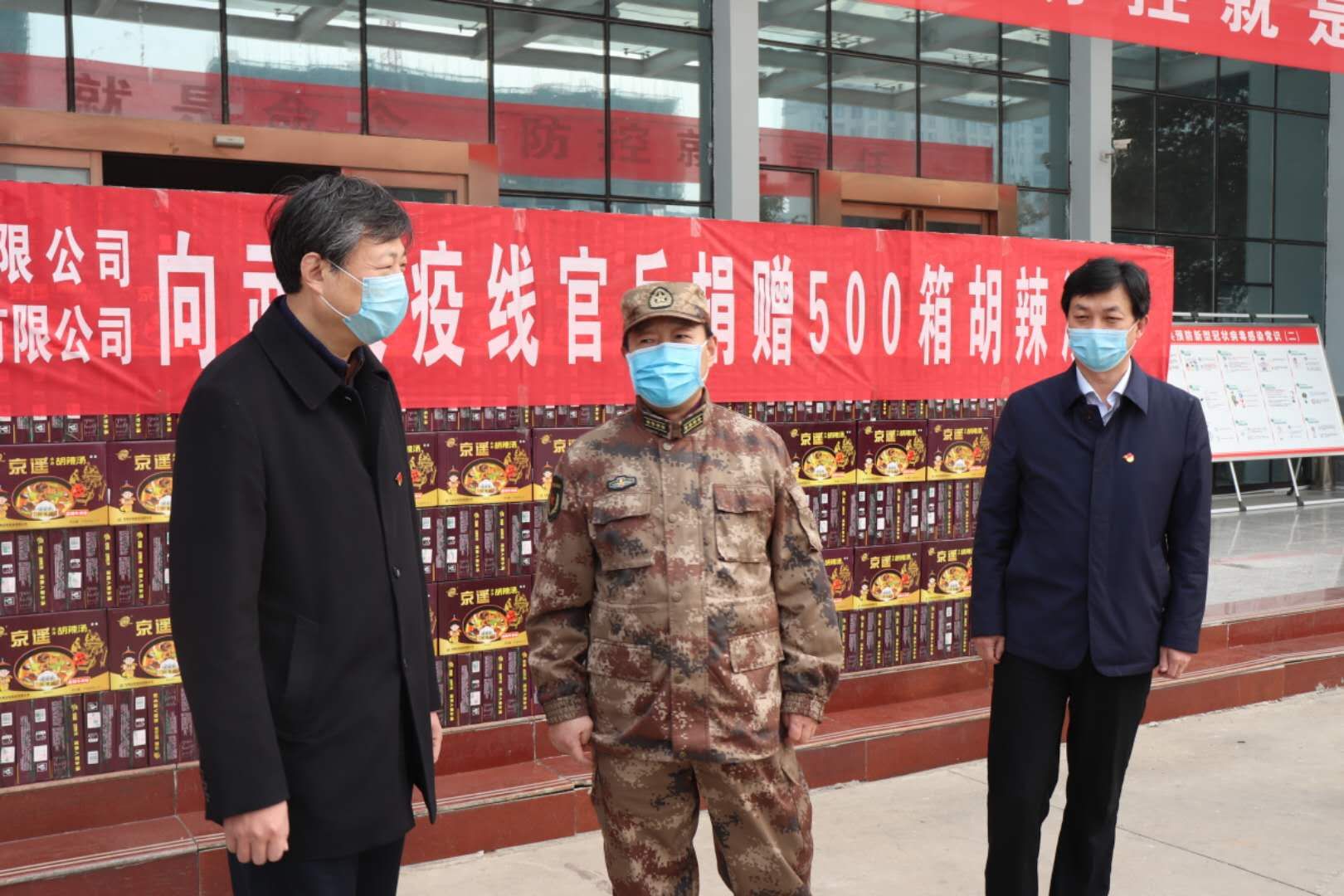 為助力解放軍官兵抗“疫”工作,2月24日上午,東方時尚(西華)機(jī)場有限公司,向武漢抗(疫)前線官兵捐贈價值一萬余元的胡辣湯料。周口軍分區(qū)司令員王善沖,西華縣委書記林鴻嘉,常務(wù)副縣長王獻(xiàn)超,西華縣人武部部長錢瑞、政委涂友佳,親臨捐贈現(xiàn)場。
