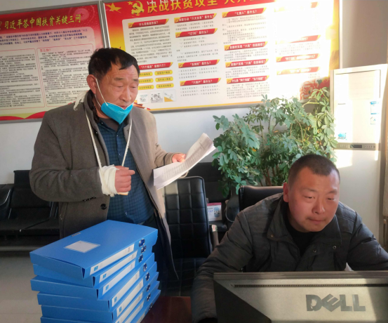 2月24日下午,在鹿邑縣產(chǎn)業(yè)集聚區(qū)姚莊行政村執(zhí)勤卡點(diǎn),右手臂打著夾板、扎著吊帶的村會(huì)計(jì)魯雙全在忙著指導(dǎo)匯總?cè)甯鞯胤掂l(xiāng)人員名單。今年已經(jīng)59歲的魯雙全是一名有著20年黨齡的老黨員,自疫情防控工作開始以來,就一直堅(jiān)守在一線,入戶宣傳、排查登記、消殺防疫、卡點(diǎn)執(zhí)勤工作崗位上,他常說,“越是危難之時(shí),黨員越要帶頭沖鋒在前”。