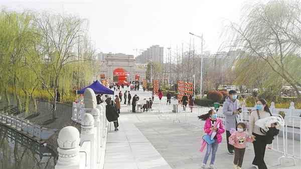 記者沿周口公園主干道向里走看到,路旁的花燈鮮艷奪目,如意湖邊楊柳依依,園內(nèi)迎春花開、玉蘭飄香,滿園春色如期而至。記者發(fā)現(xiàn),游客們?nèi)齼蓛傻?,主要以家庭為單位一起游玩,沒有出現(xiàn)扎堆現(xiàn)象。