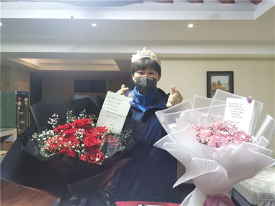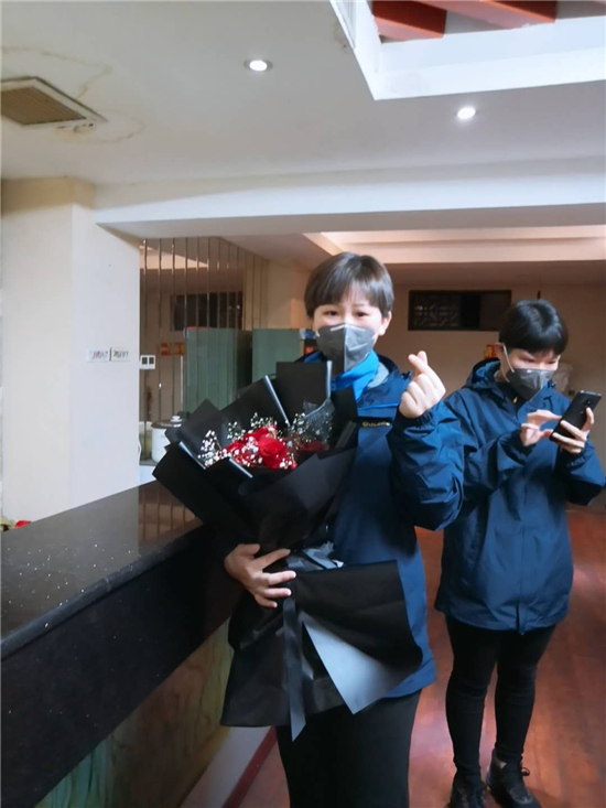 隊伍集合完畢,接下來的一幕令許聽聽始料未及。來自當?shù)厣鐓^(qū)的工作人員,手捧蛋糕、鮮花,唱著生日歌,來到許聽聽面前,向她致以生日祝福。特殊時期,身處抗疫一線,忙于照顧病人,許聽聽此前對自己的23歲生日沒有任何憧憬,她告訴記者,其實她當天沒想起來是她的生日,面對突如其來的生日祝福,許聽聽說:“當時的心情既激動又感動。”。