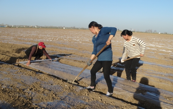 3月24日,沈丘縣周營鎮(zhèn)歐營村生態(tài)中藥材種植基地,當(dāng)?shù)亍八庌r(nóng)”們正為新種植的白術(shù),覆蓋農(nóng)膜增溫保墑。