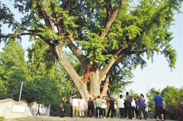 許村白果樹 位于商水縣鄧城鎮(zhèn)許村西,為西漢時期種植。1983年被定為縣級重點文物保護單位。 白果樹學名銀杏,以壽命長而著稱。許村白果樹高20米左右,胸圍7.5米,覆蓋地面1畝許。三國時期修灌溉渠道,堆土封在樹身上,地平面使樹干留下細腰,后雨水沖刷使地面降低,露出樹根,外皮綻破,被后人傳說為漢光武帝劉秀在此歇息時拴馬所勒。 歷經(jīng)千年風霜,白果樹仍枝葉繁茂,蒼勁挺拔,成為遠近聞名的壽星古樹和人文景觀。