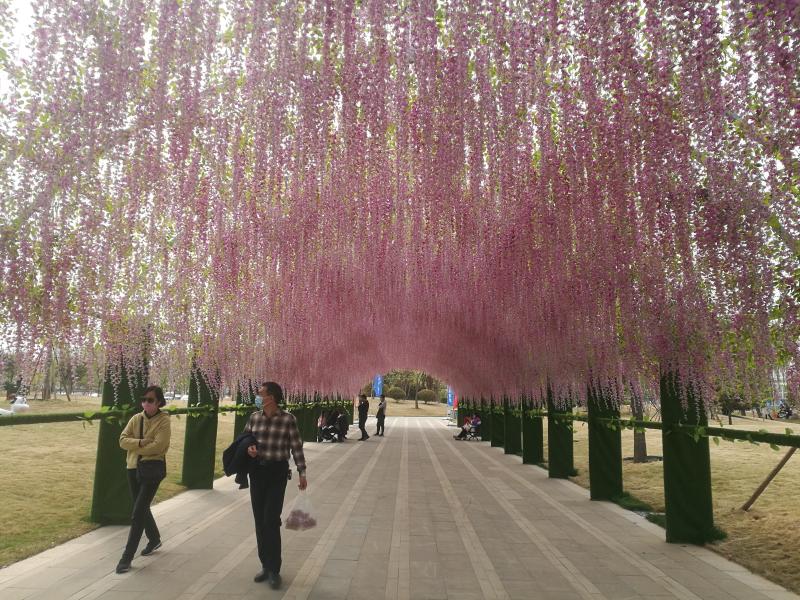 受疫情影響,清明小長假,不少市民放棄了出行計(jì)劃。周口本地的游園、景點(diǎn)因此很是“火了”一把。近年來,周口城市建設(shè)日新月異,踏青賞花,在家門口就能滿足了。圖為周口某綠色基地節(jié)日場景。 記者 李偉 攝