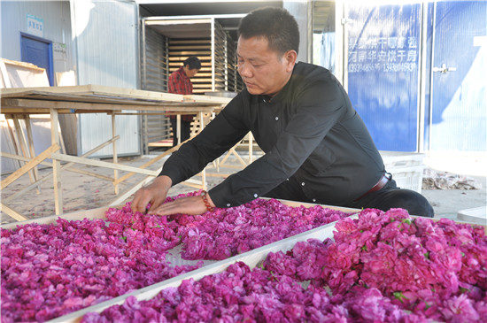 2015年,在昆明、鄭州等地從事花卉經(jīng)營銷售十多年,積累了一定經(jīng)驗和資本的劉軍停返鄉(xiāng)流轉土地種植藥用玫瑰400多畝,目前已到采摘期。這些玫瑰經(jīng)分揀、烘干等初加工后銷售到南方某醫(yī)藥公司進行深加工,花農(nóng)每畝可收入7000元左右。