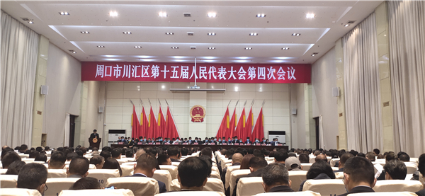 上午9時,大會主席團常務(wù)主席、區(qū)委書記李宗喜宣布,川匯區(qū)第十五屆人民代表大會第四次會議開幕。會場全體起立,奏唱國歌。