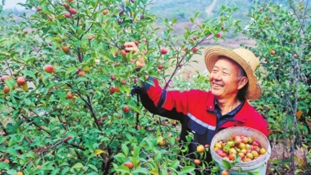 10月10日,靈寶市焦村鎮(zhèn)羅家村,位于國(guó)家4A級(jí)旅游景區(qū)娘娘山腳下的現(xiàn)代矮砧蘋(píng)果園里,去掉紙袋的紅蘋(píng)果綴滿枝頭,正曬著日光,散發(fā)出淡淡清香。