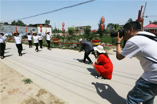 采風(fēng)期間,10多名專業(yè)攝影師奔赴奉母鎮(zhèn)前邵村、前于王村以及孝賢碑林等地,進(jìn)行實(shí)地探訪采風(fēng)。前邵村是當(dāng)?shù)赜忻膫鹘y(tǒng)村落,村里文化氛圍濃厚,先后走出10多位戲曲方面的國(guó)家一級(jí)演員。在該村,一支業(yè)余的文藝宣傳隊(duì)引起攝影家們關(guān)注的目光。大家即興表演了兩三個(gè)節(jié)目,引得攝影家們極大興趣,不停按下快門拍攝。