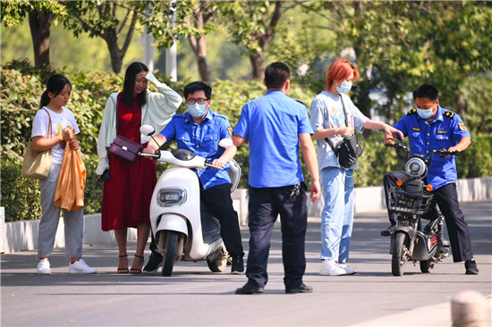 一位城管工作人員告訴記者,嚴(yán)查電動車逆行,扣車罰款不是目的,關(guān)健是告誡電動車騎行者要養(yǎng)成遵守交通規(guī)則的好習(xí)慣,共同做文明城市的使者。記者 梁照曾 攝