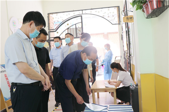 當天上午,縣政府辦副主任楊培爭、教體局局長劉現(xiàn)營、洺南黨工委書記張杰、疾控中心主任張吉志、公安局副政委朱衛(wèi)兵、教體局副局長劉廣鋒及衛(wèi)健委、食藥局相關負責人先后深入實驗幼兒園、小天鵝幼兒園、弘月幼兒園、第二實驗幼兒園等城區(qū)幼兒園,調研指導返園復學工作。