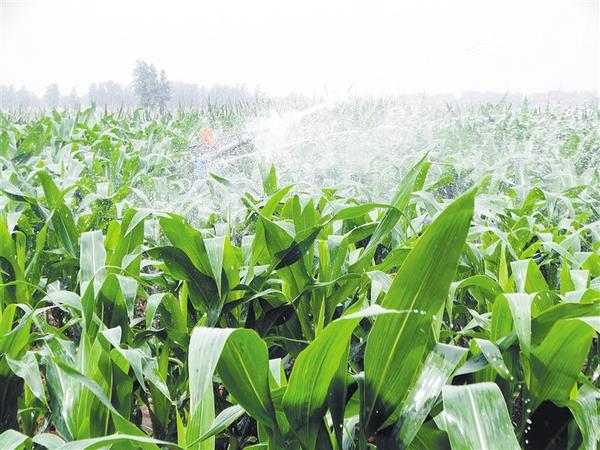 ② 6月4日,沈丘縣周營鎮(zhèn)黃孟營村農(nóng)民在用小型自動噴機(jī)械噴灌春玉米。 謝辛凌 攝