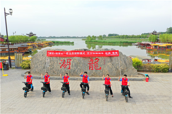 當(dāng)日38度的高溫酷熱擋不住檢察干警守護(hù)淮陽(yáng)河暢、水清、湖凈、岸綠、景美的決心和信心,30名檢察干警、志愿者騎電車圍湖宣傳,為市民進(jìn)行相關(guān)政策的講解,號(hào)召市民熱愛龍湖,告知群眾及社會(huì)各界人士參與檢察公益保護(hù)的方式和途徑,公開聯(lián)系電話,微信公眾號(hào),方便群眾通過(guò)多種渠道提供案件線索。