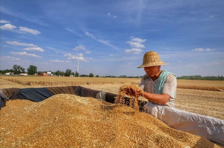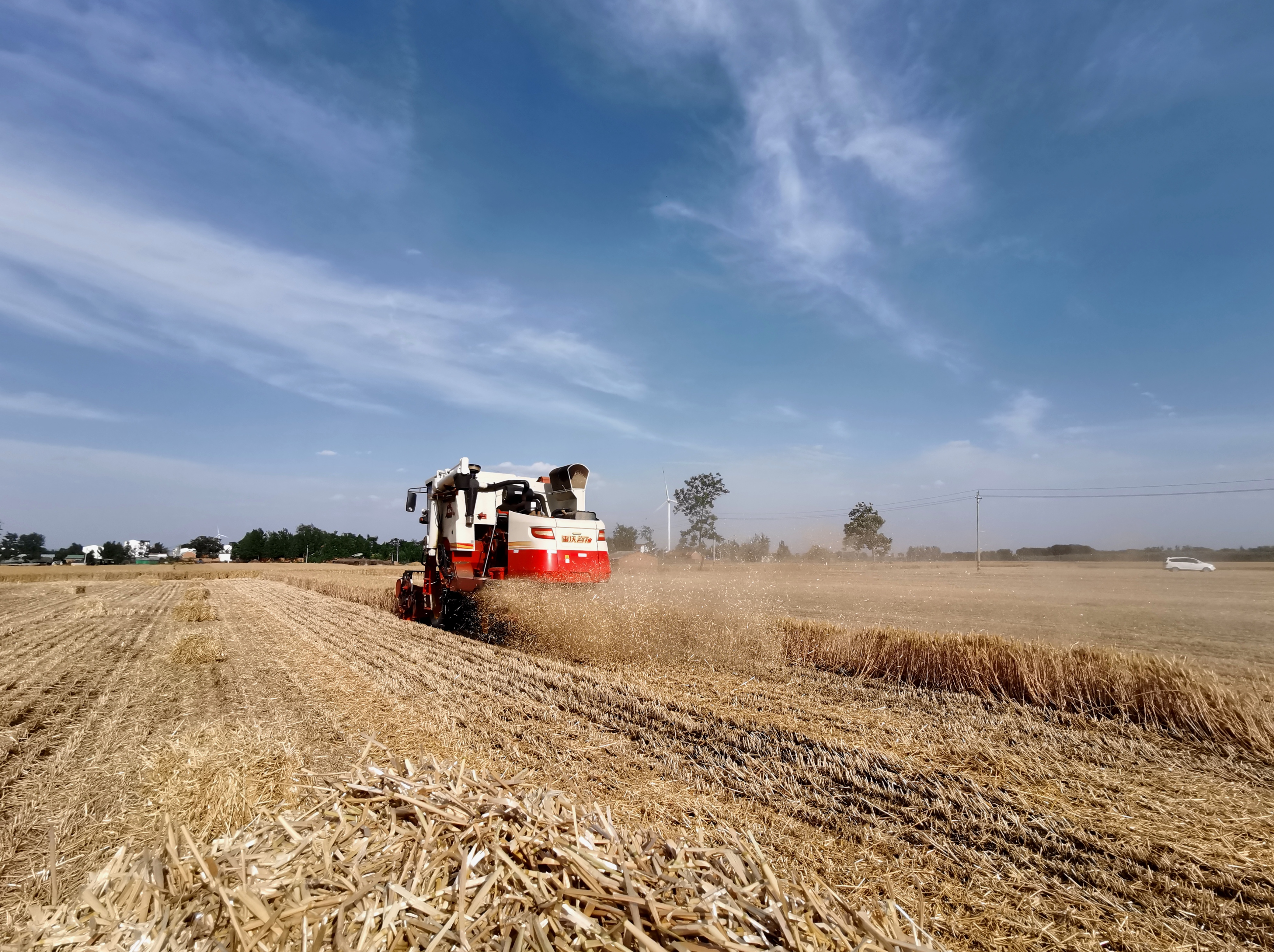 驕陽似火,麥香四溢。6月的西華鄉(xiāng)村大地到處一片繁忙景象。一臺臺收割機在金黃色的麥浪中轟鳴著馳騁,隨著小麥收割機駛過,一顆顆金燦燦的麥穗被“吃”進收割機,然后,一粒粒飽滿的麥子從出倉口“吐”進農(nóng)用車車斗里,農(nóng)民的臉上洋溢著豐收的喜悅。