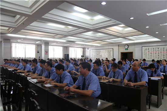 近日,項城市人民檢察院黨組書記、檢察長周威為全院干警講“強化四個意識,推進機關黨建上水平”專題黨課。