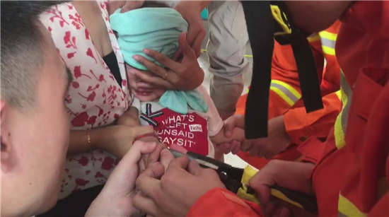 6月8日,鄲城消防救援大隊(duì)接到群眾報(bào)警稱虎崗鄉(xiāng)郭集村顧莊2歲小男孩因?yàn)樨澩媸种副讳摴芴鬃∪〔幌聛?,請求幫助。接到?bào)警后,鄲城縣消防救援大隊(duì)立即出動(dòng)2輛消防車10名指戰(zhàn)員前往處置。