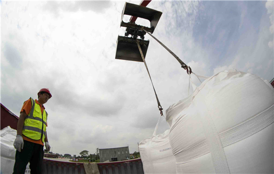本地生產(chǎn)的整車堿正在碼頭卸車