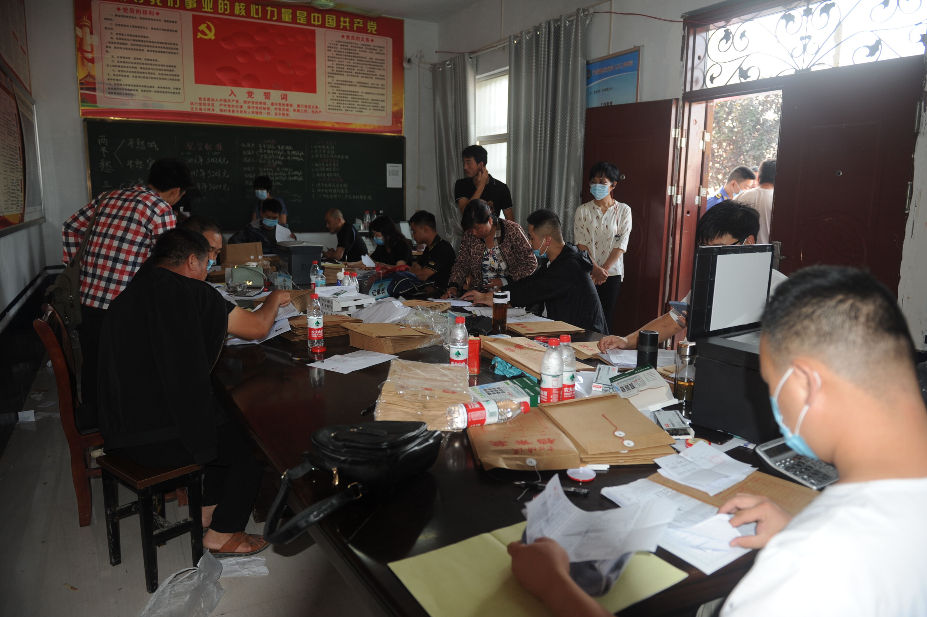 村室內(nèi),工作人員有的在忙著為群眾復(fù)印材料,有的在緊張地為群眾簽訂房屋拆除協(xié)議,大家都忙得不可開(kāi)交。