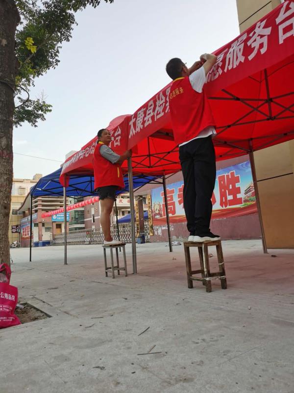 6日下午3時(shí)許,鄭雪艷和王作宇二人被安排到太康縣華夏外國(guó)語(yǔ)高考考點(diǎn)負(fù)責(zé)為考生和家長(zhǎng)搭建11個(gè)茶水棚?!跋挛?點(diǎn)正是一天中最熱的時(shí)候,考點(diǎn)附近也沒有樹蔭?!碧悼h網(wǎng)信辦副主任高一麟回憶說,要在天黑之前搭建好11個(gè)茶水棚,對(duì)于鄭雪艷和王作宇兩人來說并非易事。