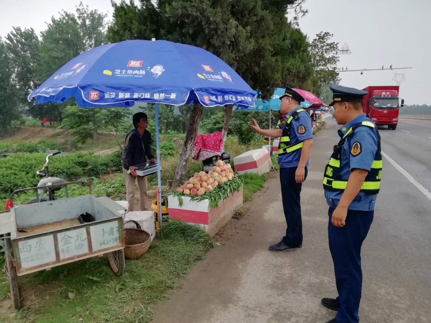 隨著瓜果等農(nóng)產(chǎn)品陸續(xù)上市,龍源路附近很多村民直接把瓜果堆放在公路邊上占道經(jīng)營,給道路交通帶來嚴重的安全隱患。通過勸導、宣傳教育,提高了沿線經(jīng)營戶對違章占用公路擺攤設(shè)點危害性的認識,自覺將攤點撤離公路至安全地帶,確保了沿線公路的安全暢通。