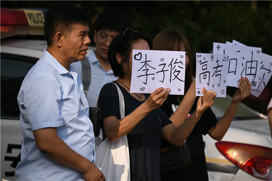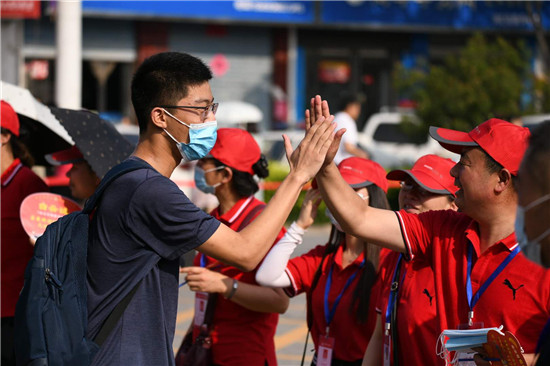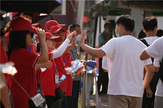 高考考生入場(chǎng):家人喊加油 師生相擊掌