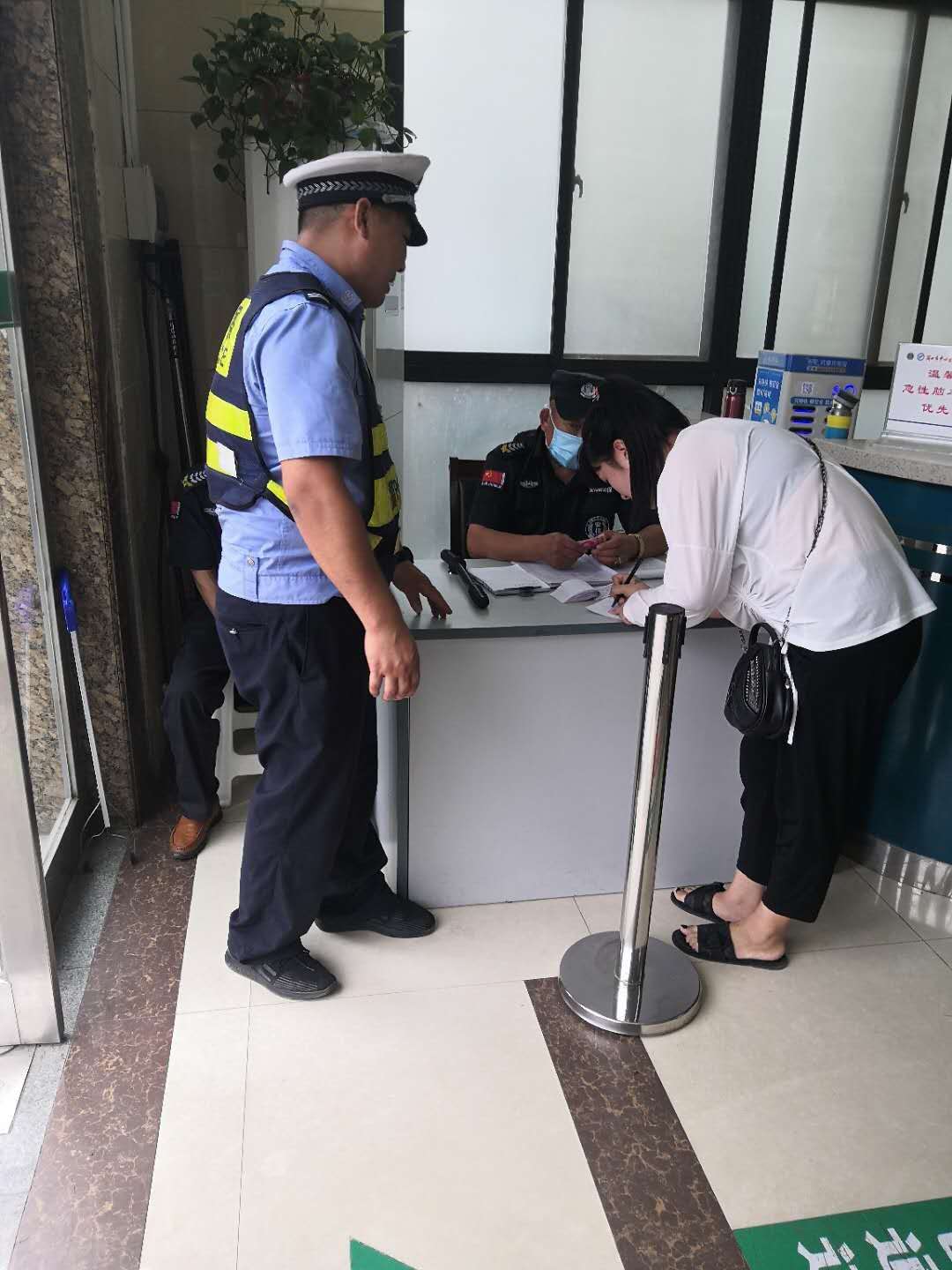 當(dāng)時(shí)日下午,天氣炎熱。商水縣公安局交警大隊(duì)六中隊(duì)幾名隊(duì)員頂著烈日在寧洛高速周口南出口執(zhí)勤。16時(shí)30分,從高速上下來一輛車號豫P8T01*的轎車,一李姓男子下車后急匆匆向交警求助。