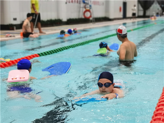 7月9日,不少孩子們?cè)谟斡攫^內(nèi)游泳嬉戲。暑假開始了,孩子們開始了豐富多彩的假期生活,有不少孩子來(lái)到游泳館,在碧水中游戈,快樂健身。許多家長(zhǎng)認(rèn)為,游泳除了可以讓孩子健身、消暑外,還能提高孩子的自救能力。