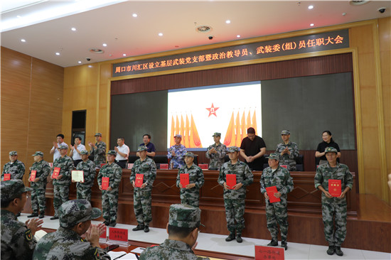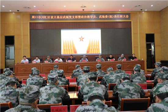 黨管武裝建設(shè)國防,軍民攜手共筑長城。為健全武裝工作組織領(lǐng)導(dǎo)體系為推動國防動員和后備力量建設(shè)在基層末端落實,7月16日上午,周口市川匯區(qū)召開基層武裝黨支部暨政治教導(dǎo)員、武裝委(組)員任職大會。周口軍分區(qū)司令員湯維政,區(qū)委書記、區(qū)人武部黨委第一書記李宗喜,市委組織部處級干部宋陽,區(qū)人武部政委高新傳、部長陳繼芳及城鄉(xiāng)一體化示示范區(qū)、經(jīng)濟開發(fā)區(qū)、港口物流產(chǎn)業(yè)聚集區(qū)等有關(guān)負責(zé)同志參加了大會。會上設(shè)立了18個基層武裝黨支部,任命了15名基層武裝部政治教導(dǎo)員、20名村(社區(qū))武裝委(組)員任職命令,武裝部政治教導(dǎo)員、武裝預(yù)建黨支部書記和兼職武裝委(組)員代表先后作了履職承諾發(fā)言,湯維政等為新任命的人員頒發(fā)了任職證書。
