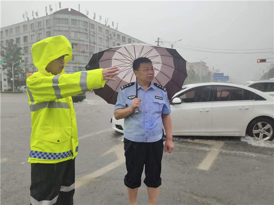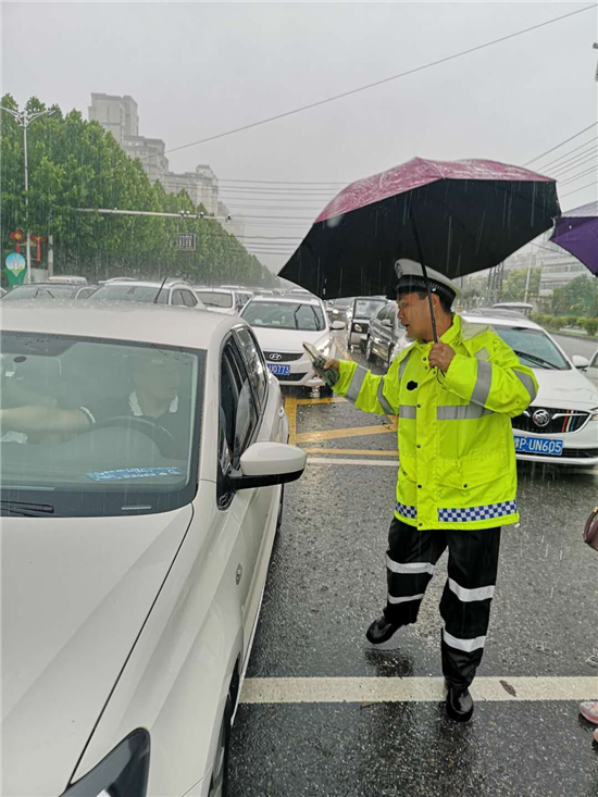 大雨滂沱,交通擁堵。7月22日,針對市區(qū)降大雨且部分路段出現(xiàn)嚴(yán)重積水的情況,交警及時啟動惡劣天氣應(yīng)急預(yù)案,迅速投入到工作中。