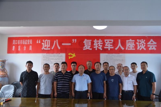 7月30日,周口市市場(chǎng)監(jiān)督管理局港區(qū)分局組織召開(kāi)“迎八一”復(fù)轉(zhuǎn)軍人座談會(huì),領(lǐng)導(dǎo)班子成員和全局復(fù)轉(zhuǎn)軍人參加。