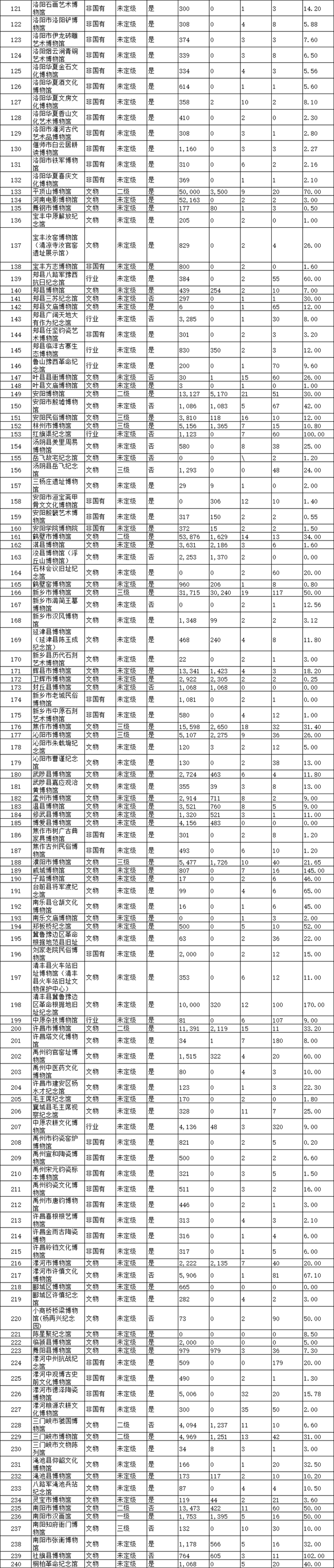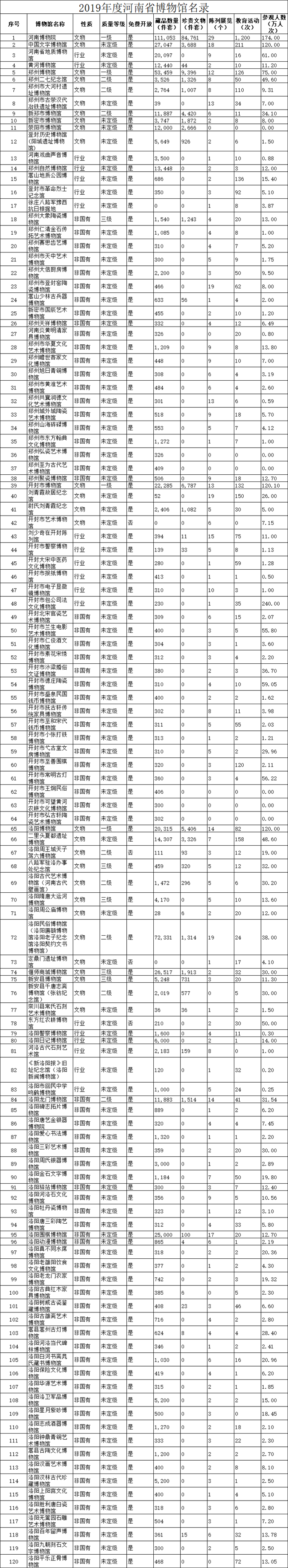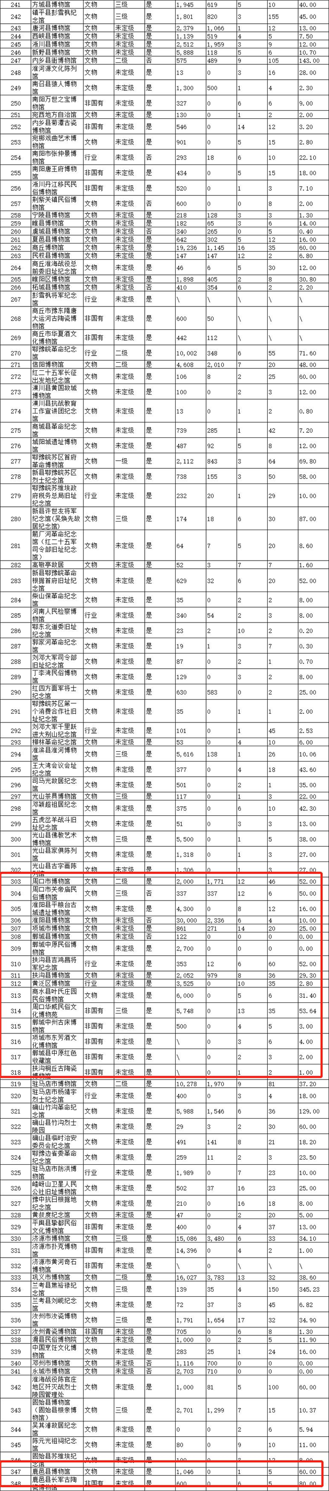 日前,《2019年度河南省博物館名錄》(以下簡(jiǎn)稱(chēng)《名錄》)對(duì)外公布。根據(jù)《名錄》,截至2019年底,河南省共有348家博物館,年接待觀(guān)眾達(dá)7174萬(wàn)人次。周口市及下轄縣、區(qū)收入《名錄》博物館18家,年接待觀(guān)眾472.14萬(wàn)人次。