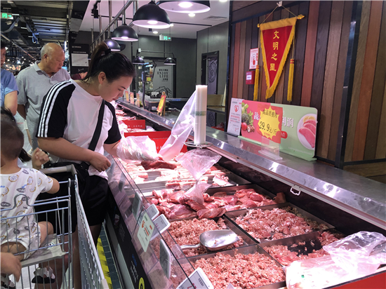 “太貴了,吃不起了,現(xiàn)在吃豬肉才是’土豪’的象征?!爆F(xiàn)在,豬肉價格已經(jīng)成了市民互相調(diào)侃的話題之一。近日,國家統(tǒng)計局河南調(diào)查總隊發(fā)布數(shù)據(jù)稱,7月份,河南居民消費價格指數(shù)(CPI)同比上漲2.9%。豬肉價格繼續(xù)領(lǐng)漲,上漲87.2%。但記者走訪發(fā)現(xiàn),周口一些超市的豬肉價格不僅沒漲,反而有小幅下降。對此,周口業(yè)內(nèi)人士稱,周口區(qū)域的豬肉價格近一周之內(nèi)波動不大,還會有小幅回落,但從長期來看,可能還會面臨上升趨勢。