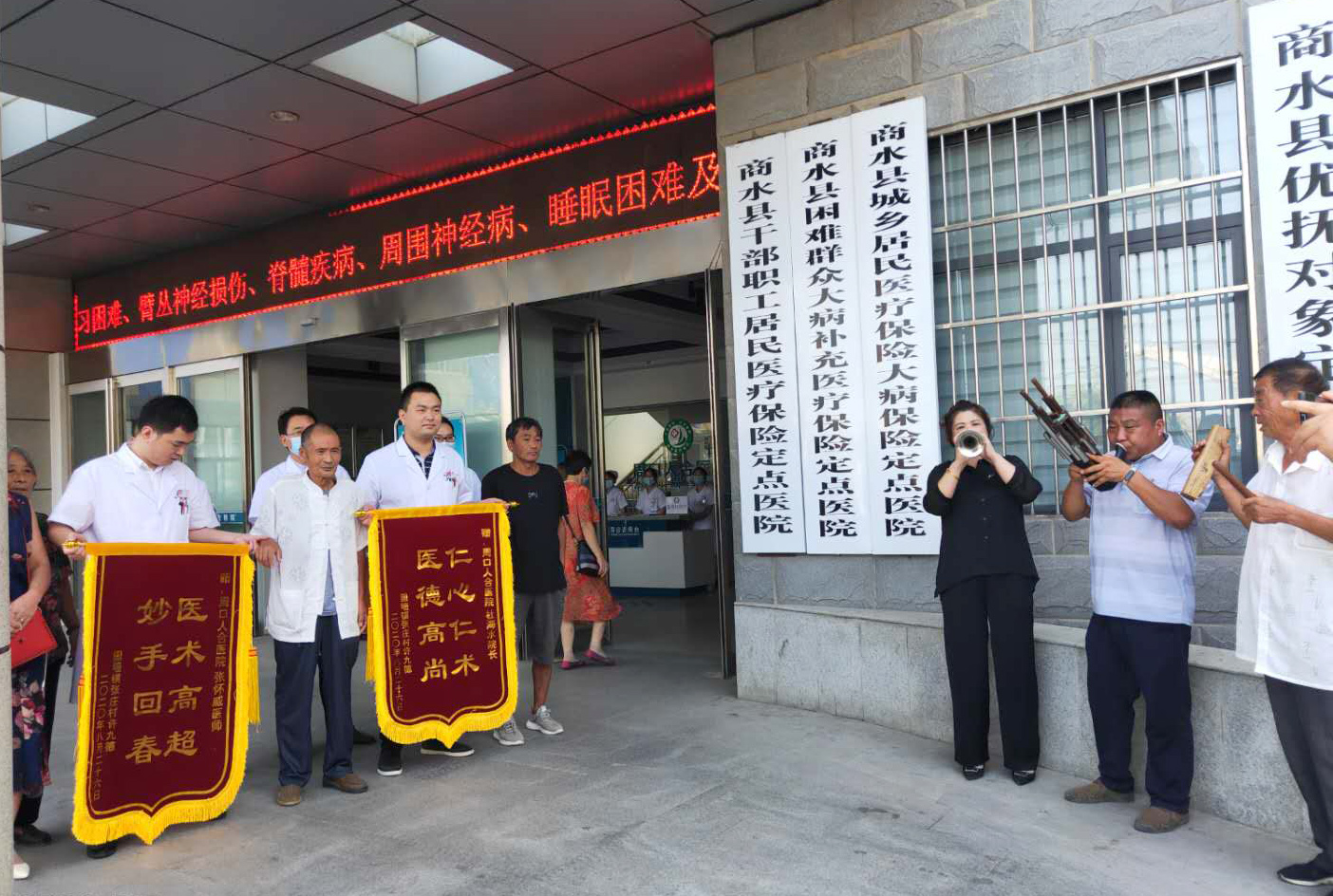 “醫(yī)術(shù)醫(yī)風(fēng)醫(yī)德好,俺給好醫(yī)生送錦旗”,歡快高昂的嗩吶聲響徹周口人合醫(yī)院急診部門(mén)前,嗩吶手以歡快的音樂(lè)表達(dá)著感激的話語(yǔ),8月27日上午10時(shí),來(lái)自商水縣固墻鎮(zhèn)張莊村的許九德老人帶著家人和一班嗩吶手,來(lái)到周口人合醫(yī)院送來(lái)錦旗,以農(nóng)民最樸實(shí)的方式表達(dá)自己的謝意。