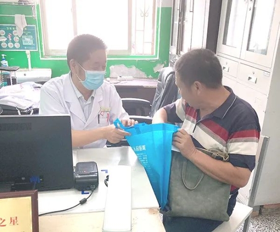 送患者手提袋,等于送上了放大號(hào)的醫(yī)生名片,方便了更多的留守在家的空巢老人,讓更多患者實(shí)現(xiàn)足不出戶就可以聯(lián)系到免費(fèi)的“家庭醫(yī)生”,得到正確及時(shí)的用藥指導(dǎo),從而有效降低了急病、突發(fā)病的發(fā)生,受到群眾好評(píng)。