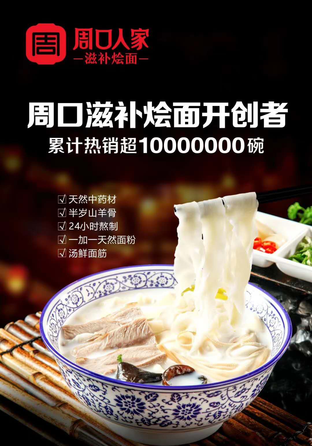 周口人家酒店于2013年在周口市工農(nóng)路成立,是一家集餐飲、住宿為一體的大型綜合性經(jīng)濟(jì)實(shí)體企業(yè),至今擁有5個(gè)餐飲店,其餐飲主營(yíng)滋補(bǔ)燴面、紅燒黃河大鯉魚(yú)、秘制北京烤鴨,特別是滋補(bǔ)燴面是其品牌美味,自周口人家酒店工農(nóng)路店開(kāi)業(yè)以來(lái)深受消費(fèi)者喜愛(ài),至今已經(jīng)賣(mài)出一千多萬(wàn)碗燴面。