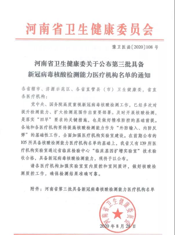 近日,鄲城縣婦幼保健院PCR核酸檢測實(shí)驗(yàn)室通過了河南省臨床檢驗(yàn)中心的室間質(zhì)量評價和實(shí)驗(yàn)室二級生物安全備案,已具備新冠病毒核酸檢測能力,可承擔(dān)新冠病毒核酸檢測工作。目前,各高校正在陸續(xù)開學(xué),但新冠疫情仍未完全控制,按照疫情防控要求,報到學(xué)生需進(jìn)行一次核酸檢測,持報告單入學(xué)報到。鄲城縣婦幼保健院作為河南省衛(wèi)生健康委員會批準(zhǔn)的新冠核酸檢測機(jī)構(gòu),積極承擔(dān)社會責(zé)任,按照“應(yīng)檢盡檢,愿檢盡檢”的原則,已經(jīng)于2020年9月1日起正式開展新冠病毒核酸檢測工作,希望廣大學(xué)子及有檢測需要的人員,本著對自己負(fù)責(zé)、對家庭負(fù)責(zé)、對社會負(fù)責(zé)的原則,積極檢測,為疫情防控工作貢獻(xiàn)力量。