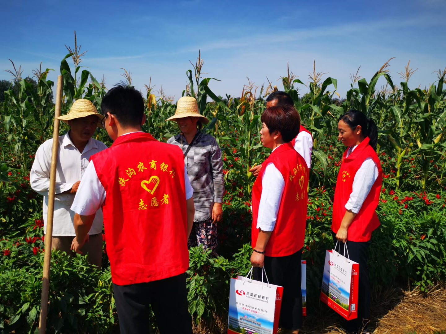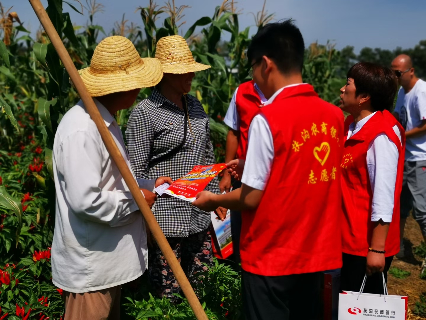 9月5日,扶溝農(nóng)商銀行大新支行“紅馬甲”們結(jié)合金融知識普及月深入田間地頭為老百姓送上金融服務和金融知識,深受村民的歡迎。