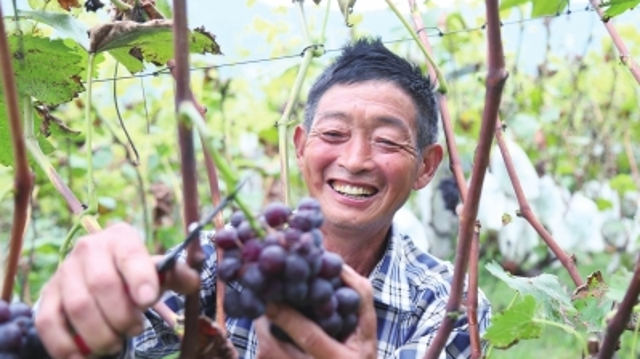 ? 9月14日,汝陽(yáng)縣十八盤鄉(xiāng)斜紋村冰墨葡萄種植專業(yè)合作社社員在葡萄園里采摘葡萄。斜紋村黨支部積極引導(dǎo)村民種植冰墨葡萄130畝。