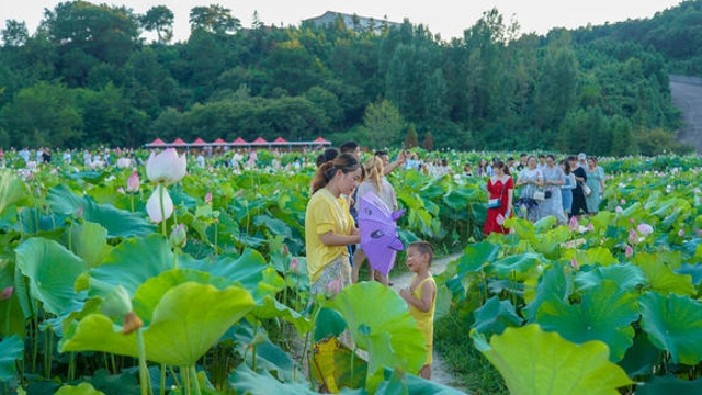 金秋九月,豐收在望。新縣泗店鄉(xiāng)陸灣村籽蓮產(chǎn)業(yè)基地荷紅柳綠、蓮蓬滿池,村黨支部書記方賢文正領(lǐng)著村民在荷花池內(nèi)忙著采摘成熟的蓮蓬,歡聲笑語(yǔ)滿溢荷塘。
