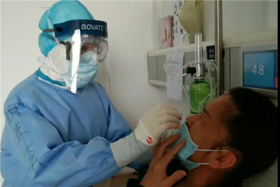 眾所周知,采集咽拭子、鼻咽拭子標本是非常危險的易感染密切接觸行為,同時對患者來說也非常不適。在病區(qū)采集時,胡奔奔總是動作輕柔,邊采集邊輕聲安撫患者,緩解患者緊張情緒。而不少患者因為感懷于胡奔奔的悉心照顧,總是強行壓抑著自己的癥狀,盡量不發(fā)出咳嗽,避免對胡奔奔造成更大危險。